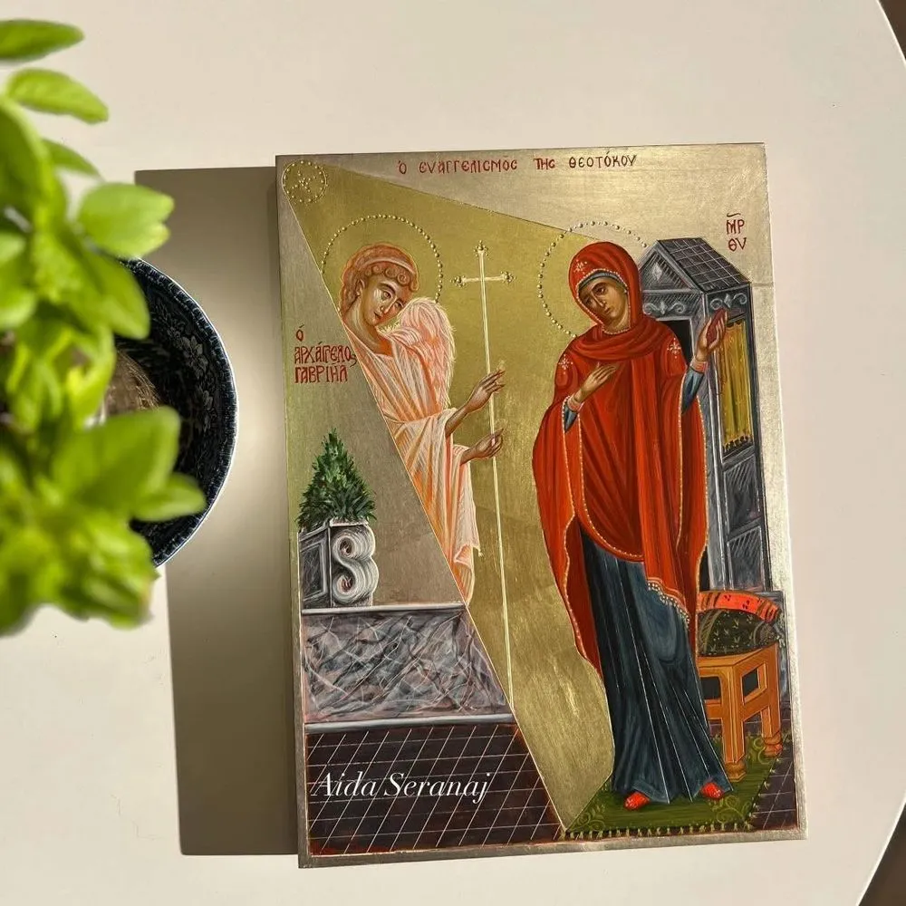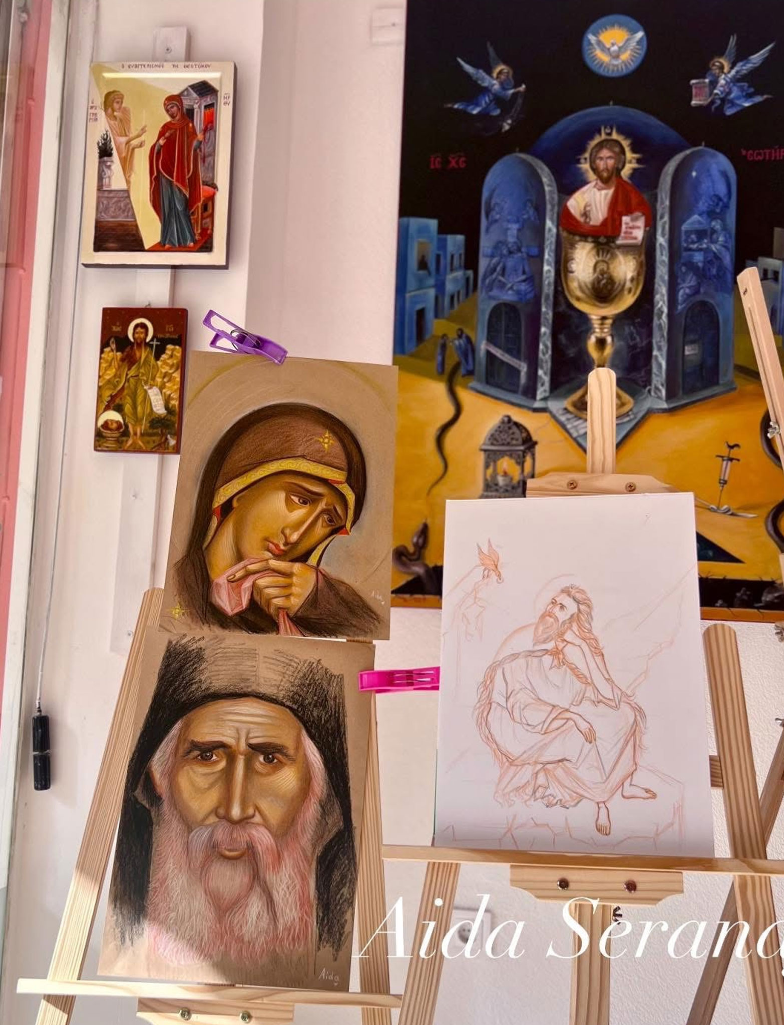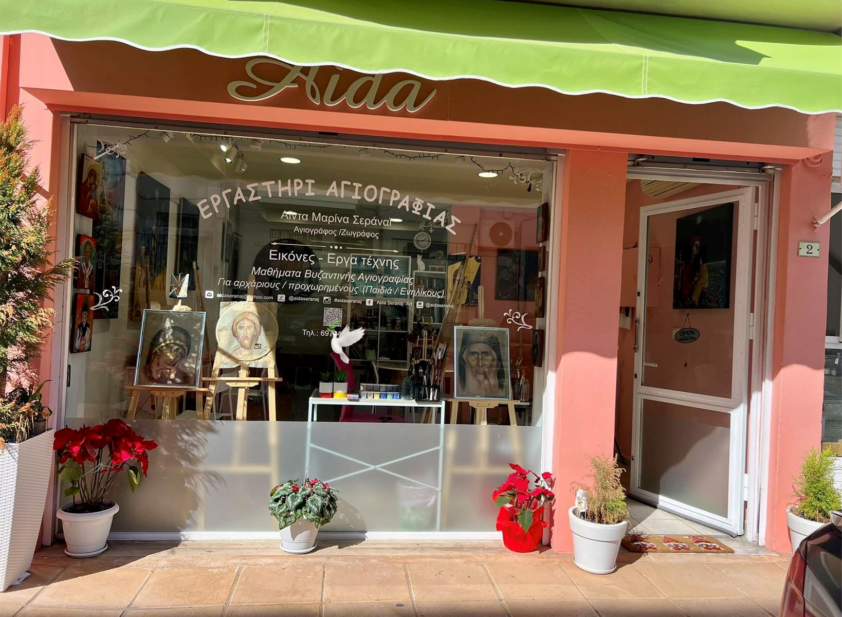 Στο εργαστήρι της, στο Ηράκλειο, η Αΐντα Μαρίνα Σεράναϊ προσφέρει ποικίλες υπηρεσίες που αφορούν την τέχνη της Αγιογραφίας και της Ζωγραφικής.